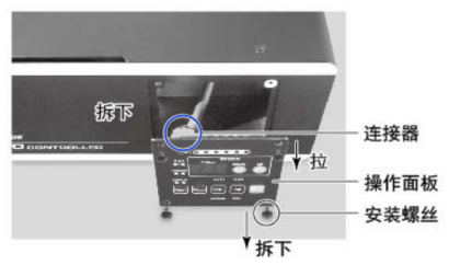 一、1拆下E4000正面操作面板的4个固定螺丝,将操作面板轻轻从控制器中拉出(图3),拆下操作面板后的连接器。
