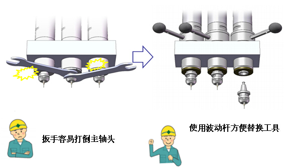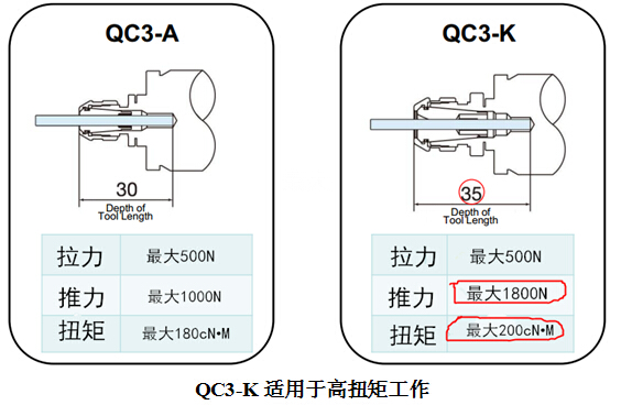 只有QC是杠杆式主轴,使用机床夹具系统加工中心技术。