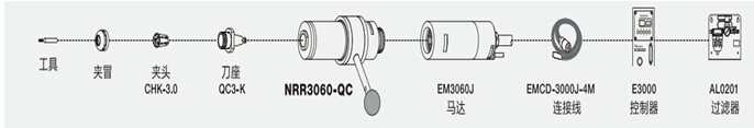 日本NAKANIAHI中西E3000系列是一种电动高速无碳刷式主轴和马达,其中NRR3060-QC采用了一种QC技术可以进行手动换刀,这种技术便于安装和调试,即使在狭小的机器里也可以快捷操作。为了使大家更加了解和使用手动换刀主轴,春亨工具为您详细介绍,如下: