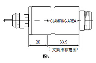 1,将主轴安装在支架上时,请按照图-8的夹紧推荐范围进行安装。