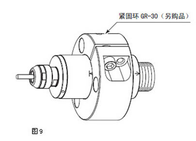 将马达主轴(主轴)安装在支架上时,建议使用“紧固环GR-30(另购品)”(图 - 9)。如果有尺寸或间隔问题不能使用“紧固环”时,请按照②所示方法进行安装。