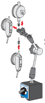 3、 除可夹持普通的百分表,千分表外,还可对带燕尾槽的杠杆表进行夹持。