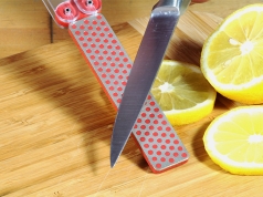 使用DMT?钻石磨刀石,可有效的快速的磨削厨房一切刀具刃具、菜刀、水果刀均可使用。生手熟手均可快速完成。