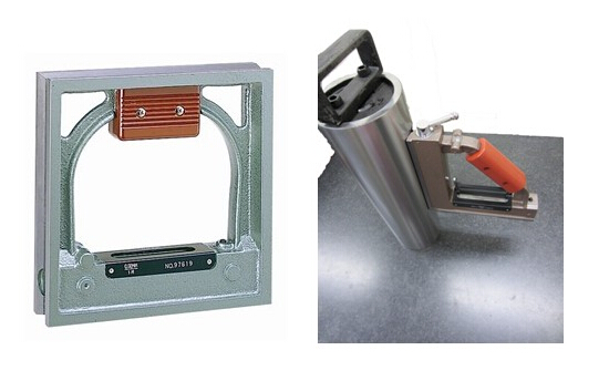 框式水平仪是具有一个基座测量面及两个垂直测量面,且水准器气泡固定或可相对基座测量面进行调整的框形水准器式测量器具。