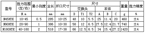 KANON活动开口扭力扳手产品规格