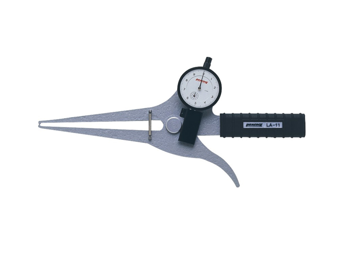 孔雀peacock带表外卡规LA-11,测量范围0-50mm,测定喉深125mm,最小读值0.1mm.适用于中央凸起的外径测量。peacock代理商春亨工具。