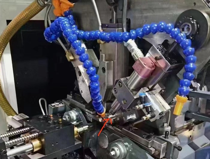 彩博888 图为MSIY-25电主轴加装在凸轮机车刀位进行斜孔加工的加工案例。