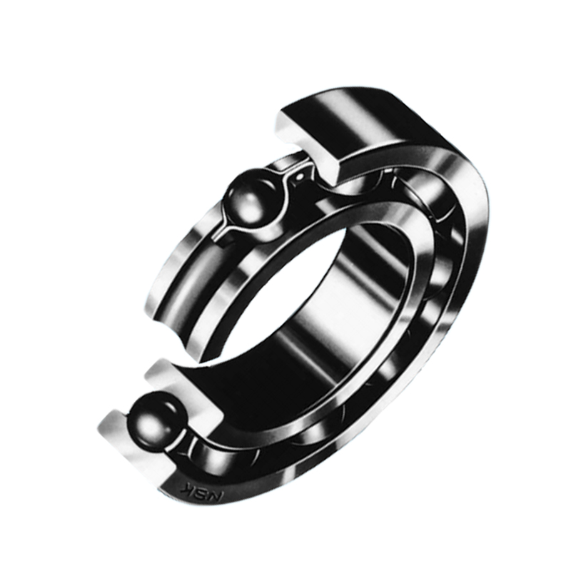 (1)满球轴承,由于在内圈及外圈上设计了填球口,可比深沟球轴承多装球。因为有填球口,所以不适于轴向载荷大的用途。另外使用轴承时,尽可能将外圈的填球口位置只作为非载荷圈。保持架为冲压保持架。