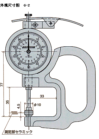 日本孔雀peacock指针式厚度表G-2,测量范围:0-20mm,测量喉深:33mm,专业测量小零件,金属,橡胶,塑料,纸张,铝箔等片状材料的厚度。