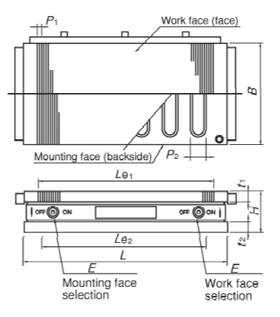 吸盘分两面,永磁吸引面和夹头安装面。开关可以打开和关闭,因此无需机械夹紧安装。可用于流体。