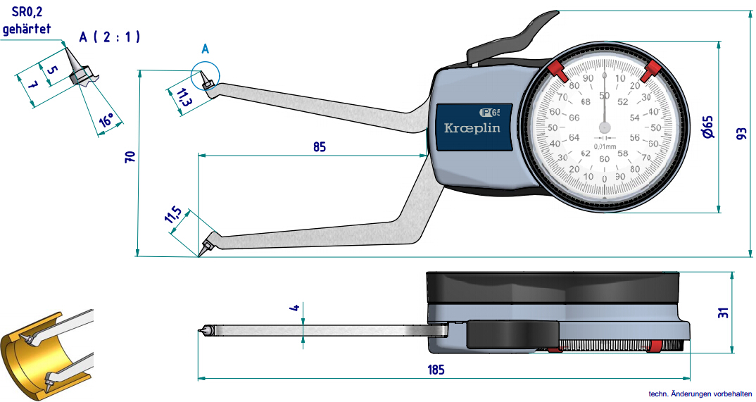 带表内卡规 kroeplin内卡规 针盘式内卡规