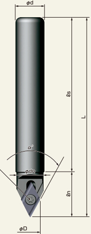 刀柄直径(φ16)和刀尖直径(φ12)的小口径钻, 更适用于狭窄部位60?的加工。