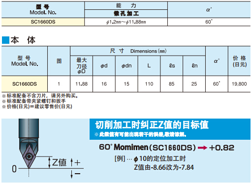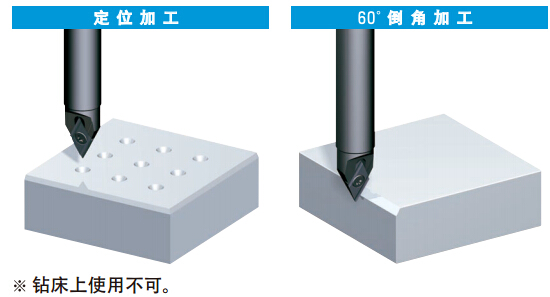 舍弃式 。只要更换刀片,无需工具补正。 中心钻兼倒角刀,节省工具更换装置的工序, 改善加工速度,提高生产效率。