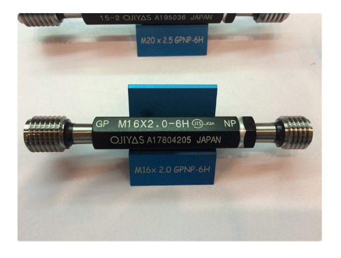 日本OJIYAS螺纹塞规,标准螺纹量规是一对的,无论是螺纹环规还是螺纹塞规,都含GO通过端/NO GO不通过端。要检查螺纹的时候,其螺纹应镶合完美。