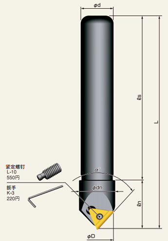 最大刀径22.5mm(90°),26.6mm(120°)
