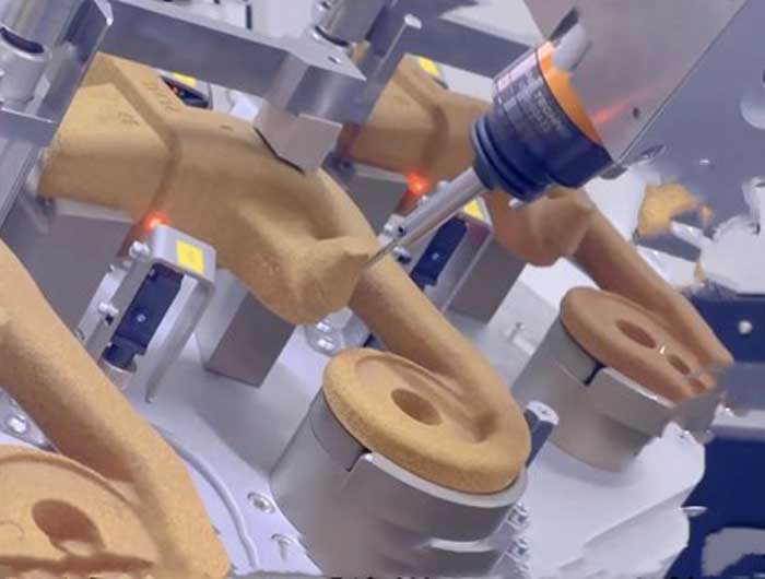 在汽车领域有一些零部件需要使用砂芯铸造,砂芯部件铸造完成后,在模具开模时沿着分模面处会产生毛刺,取出铸造砂芯后通过人工刮出毛刺,其去毛刺效率较低,容易漏刮毛刺。使用去毛刺工具容易对砂芯部件的其他地方产生剐蹭伤害。NAKANISHI浮动去毛刺主轴,保证了工件的准确性,防止误差出现,可以有效提升砂芯部件的去毛刺效率,且实现砂芯自动化去毛刺的功能。