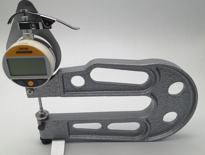 日本孔雀数显厚度计JAN-255,测量范围:0-20mm,精度:0.001mm,测厚深度:150mm。可以测量宽片材的中心,如纸,聚氨酯,乙烯树脂,橡胶和金属箔等。
