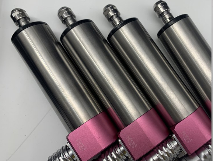 上图为一个控制器+一个分配器可搭配4支外径33mm电主轴,可节省加工成本。图为客户真实需求配套产品。俗称”一拖四”电主轴方案。