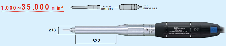 NSK细孔专用研磨头BMH-300,附件尖部直径13mm,细长型结构,与马达ENK-410S组合,适合底部的切割和研磨,适配夹头CHM-3.0。