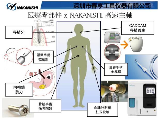 日本NAKANISHI中西NSK高速主轴随着科技发展,被广泛用于医疗零部件加工。使用应用案例说明,如下: