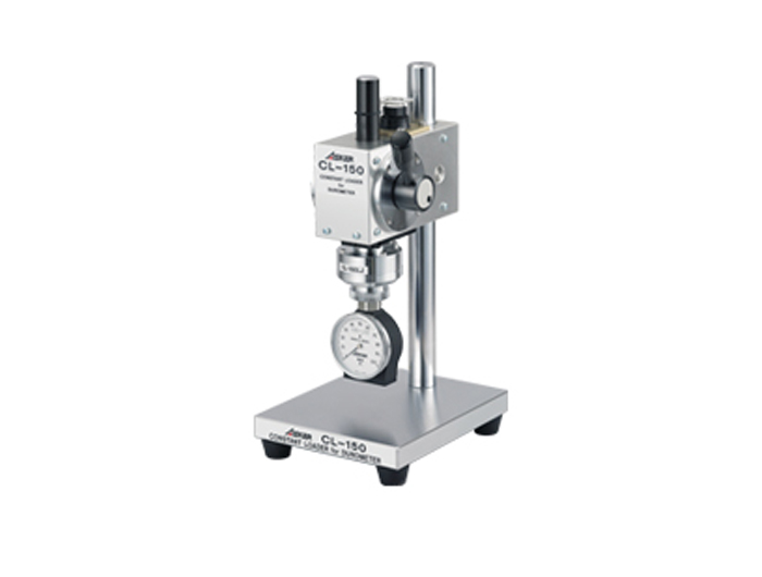 当使用橡胶硬度测试仪(硬度计)用手测量橡胶样品的硬度时,存在测量结果变化的问题。CL-150系列是恒压/恒速装载机,可消除这种变化。此外,通过采用可确保硬度计的加压表面与样品测量表面之间紧密接触的挠性接头,可以进行精确且可重复性高的硬度测量。另外,通过替换重物,可以支撑需要各种不同测量压力的硬度计。