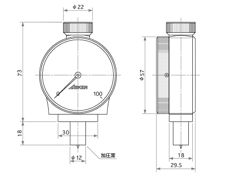 上图所示为橡胶硬度计的种类图, 根据试样的种类设计不同的硬度计. 符合 JIS K 6253标准的A型橡胶硬度计是最普遍最常用的一款.但是通常情况下,测量值在10点~90点之间,使用A型硬度计,A90点以上时使用D型硬度计(硬质材料使用),A20点以下时使用C型或E型硬度计(软质材料使用)。就是说,根据试料的种类选择合适的机型最重要。