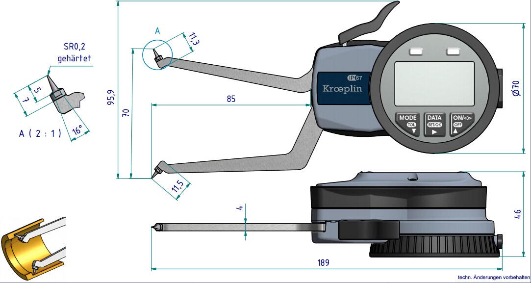 多个数显设定功能: 绝对和相对测量, 上下限超差显示等。