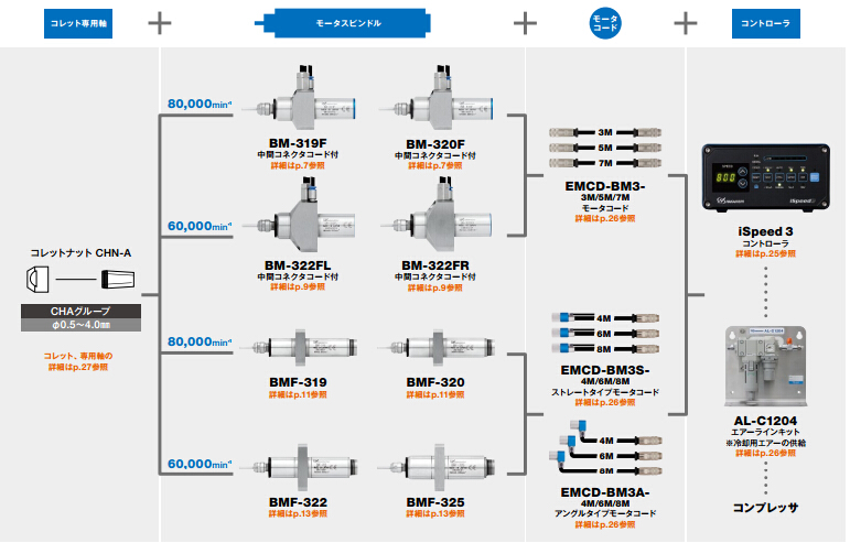 | BM-320 | Φ20mm | 80,000 min-1 | 1μm以内 | 230g |