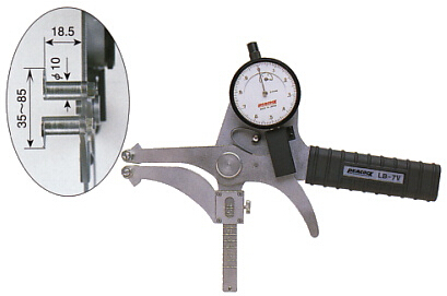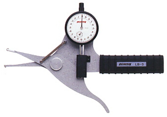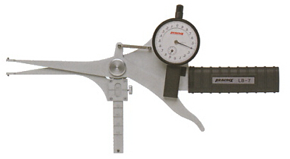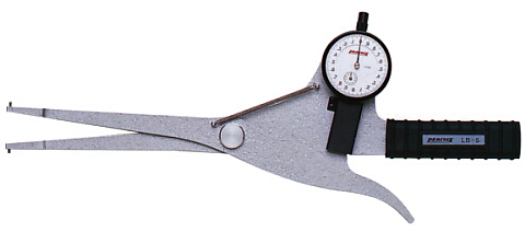 孔雀peacock带表内卡规LB-1,测量范围10-90mm,最小读值0.1mm,指示误差±0.2mm,测量喉深125mm,测头高度2mm。