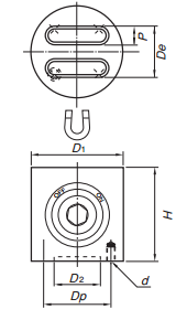 D1 | De | P | Dp | D2 | d | H | |||