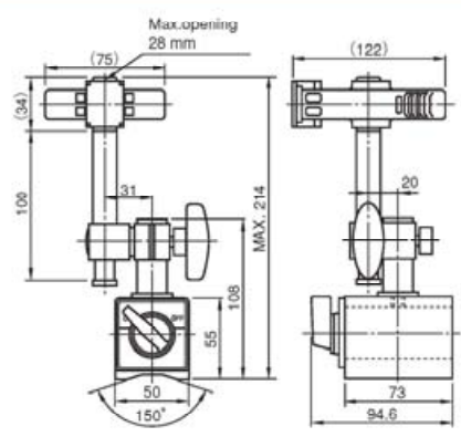 强大吸力的磁性底座,可开/关,便于安装在机床上。