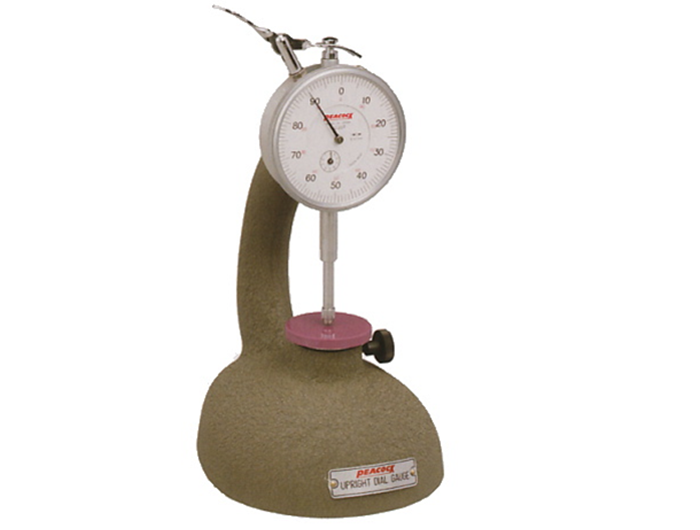 日本孔雀peacock台式橡胶测厚仪R1-C,精度0.01mm,测量范围0-20mm,适合用于测量精密零件和测试橡胶、皮革、织物和塑料材料。操作简单,测量不同材料可以设置所需要的特定压力。