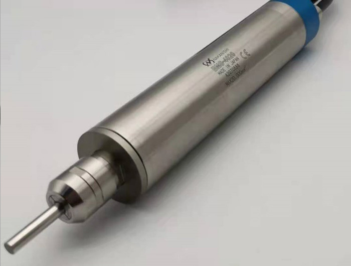 NAKANIAHI大扭矩电主轴BMS-4020,直径40mm,最高转速2万转,跳动精度1μm以内,最大出力1200W,扭矩1N.m,主要用于硬质金属和非金属材料高精密加工使用,可加装在机械臂末端或者数控机床上使用。