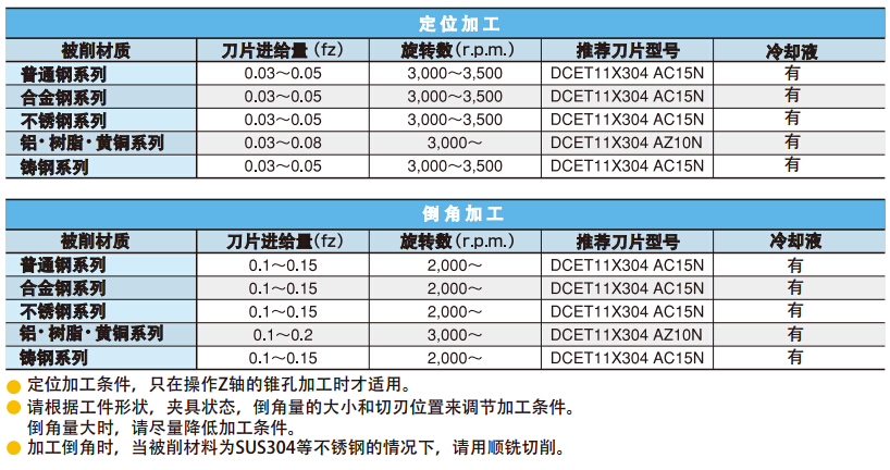 舍弃式 。只要更换刀片,无需工具补正。 中心钻兼倒角刀,节省工具更换装置的工序, 改善加工速度,提高生产效率。