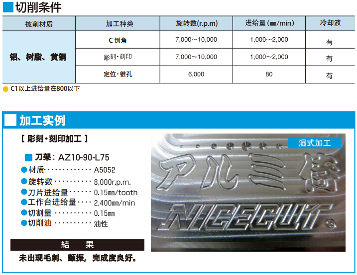 铝加工专用的刀尖形状,切割锋力度好, 不易出现震颤、毛刺,大大降低加工后的去毛刺作业。 用高强度提高耐磨性,大幅度的消减运行成本。