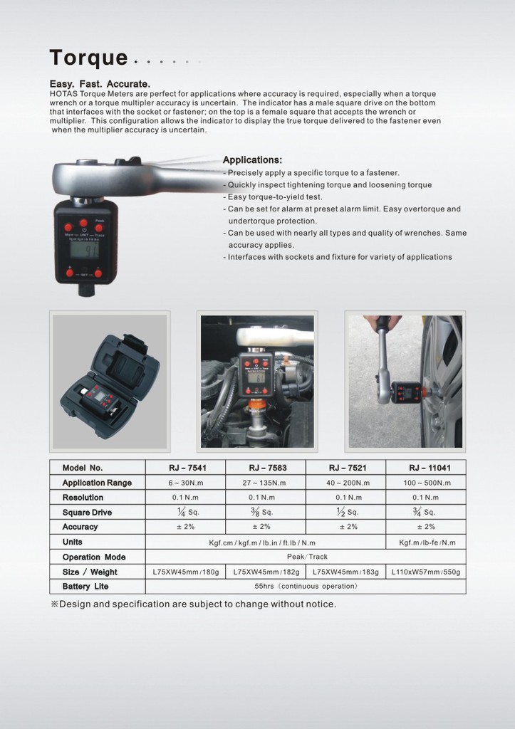 应用范围 | 6~30N.m | 27~135N.m | 40~200N.m | 100~500N.m |