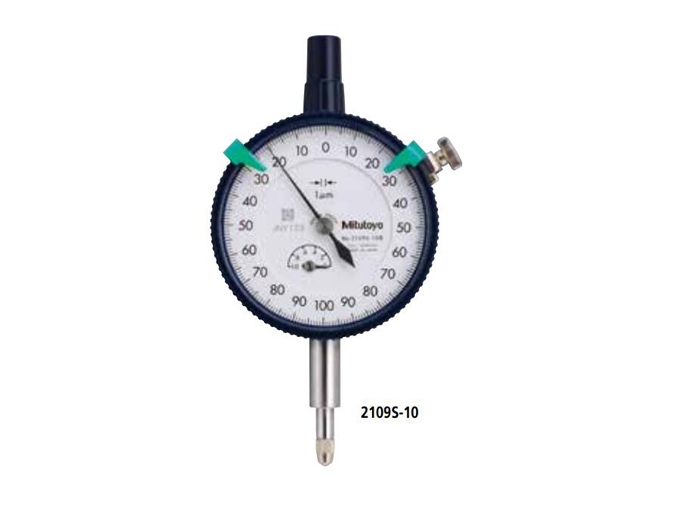 彩博888 三丰mitutoyo指针式千分表2109S-10,精度 0.001mm ,测量范围1mm.防震型、宝石轴承。是一款高质量、高精度、高可靠性的比较测量千分表。