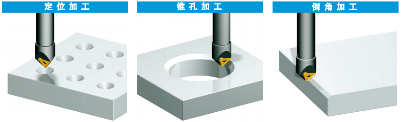 中心钻兼倒角刀,节省了工具更换装置的工序, 提高生产效率。