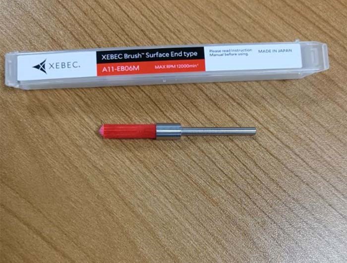 锐必克XEBEC表面用小直径研磨刷A11-EB06M,直径5mm,适用于毛刺根部厚度小于0.1mm的毛刺去除,可与转速可控的旋转工具或设备一起使用,如电动旋转工具、加工中心、复合机床、专用机床、机器人、带铣削功能的车床使用。