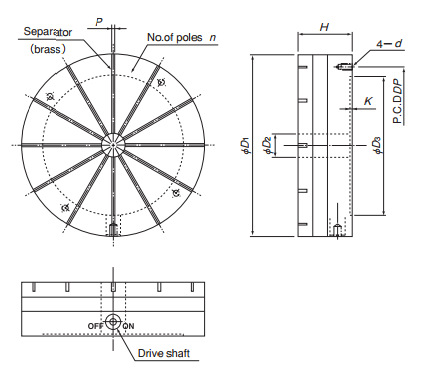 星极结构,产生强磁力对环形工件特别有效,例如轴承等。