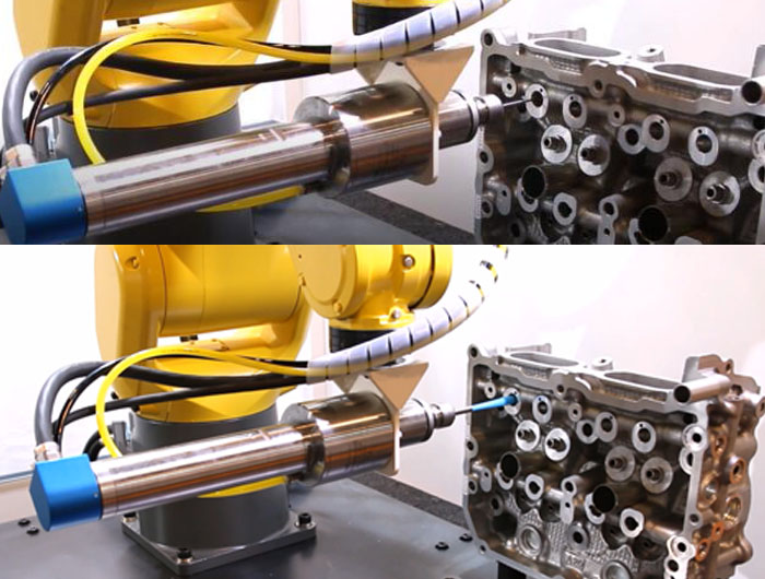 机器人汽车缸盖去毛刺,用NAKANISHI自动换刀电主轴NR4040-AQC